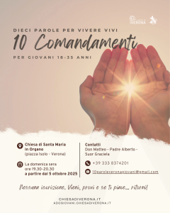 Le “10 Parole” per vivere vivi Il percorso delle “10 Parole”, o dei “10 Comandamenti”, è un percorso di (ri)scoperta della propria fede, a partire proprio dai 10 comandamenti dell’Antico Testamento. È adatto a tutti, a chi è curioso e vuole avvicinarsi alla fede, ma non sa da dove iniziare. A chi si è allontanato […]